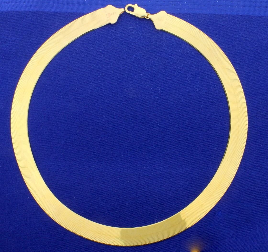In 10k yellow gold. 11.7mm wide, with large lobster clasp. 27.8g.