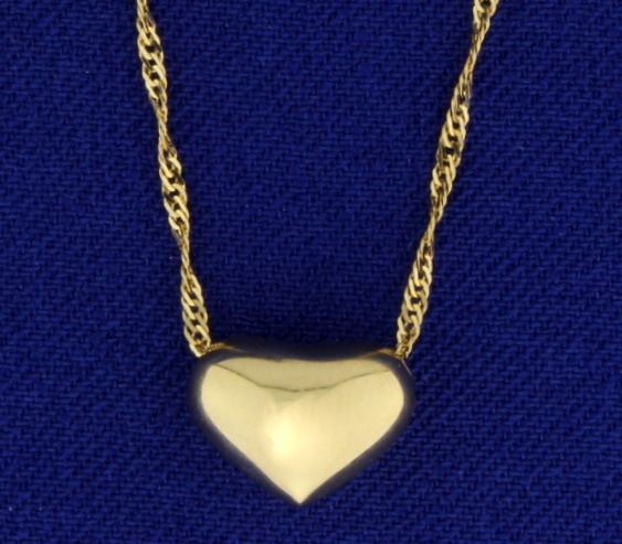 In 14k yellow gold. Beautiful 1/4 inch long rounded smooth heart pendant. 1mm thick chain. 1.4g.