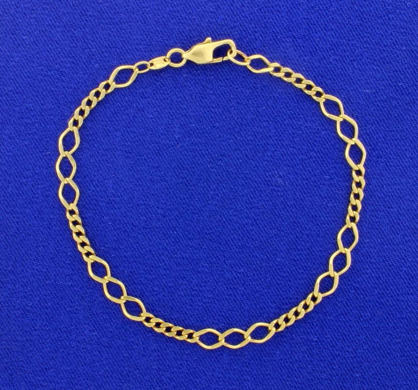 This 18K yellow gold bracelet is 7 1/4 inches long. 4.1g