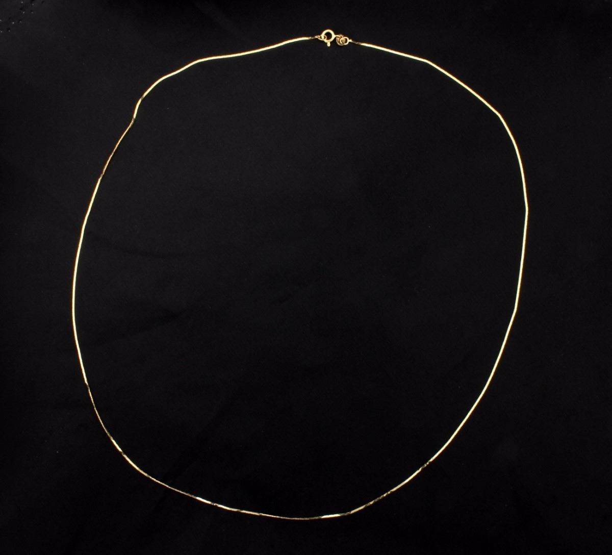 In 14K yellow gold, the chain is .75mm thick. 1.2g