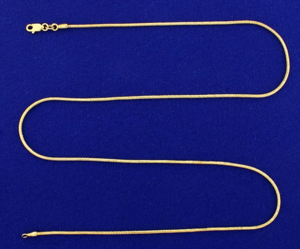 In 14k yellow gold. 1.3mm thick, with lobster clasp. 8.2g.
