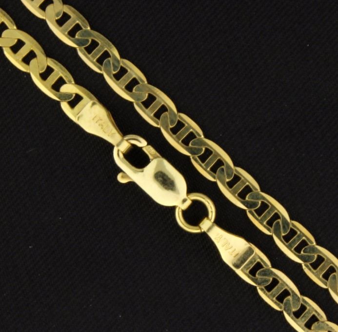 10K yellow gold, it is 3.3mm wide.        7.4g