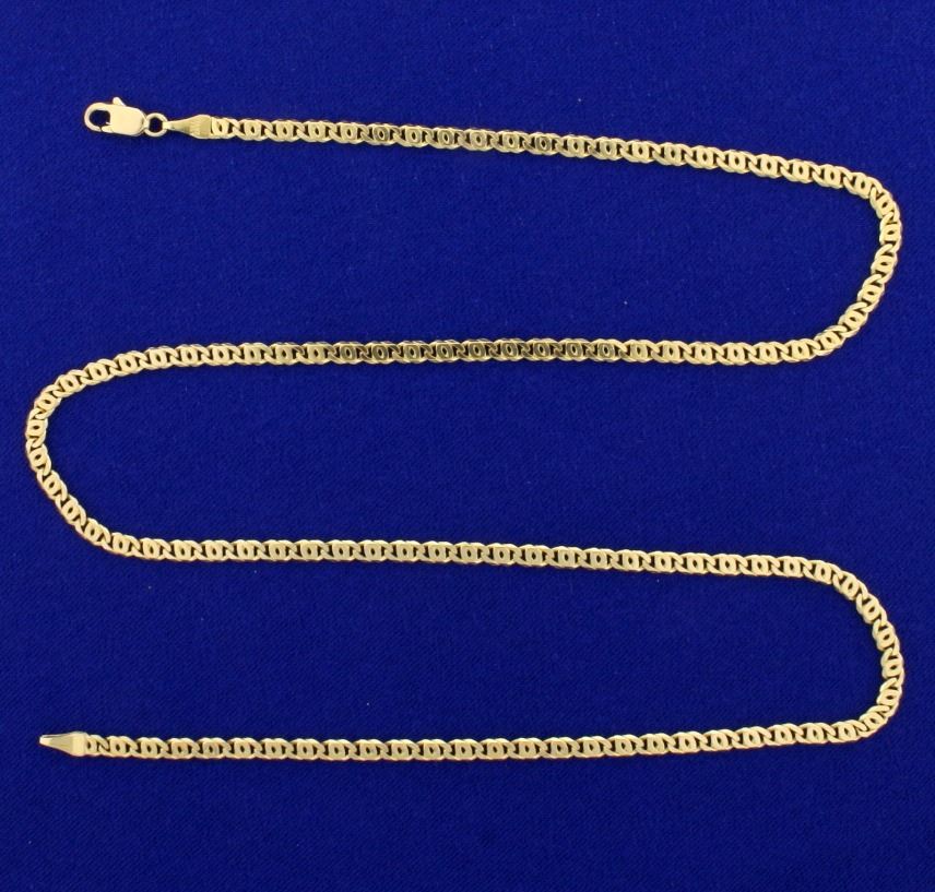 In 14k yellow gold, 20 3/4 inch long and 3.2mm wide with lobster clasp. 12.2g.