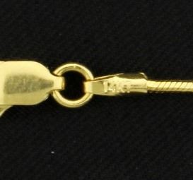 It is 14K yellow gold and is .9mm thick. 4.5g