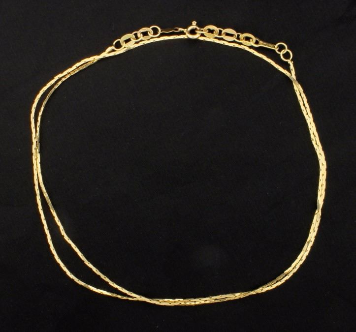It is 14K yellow gold and is 0.9mm wide. 4.1g