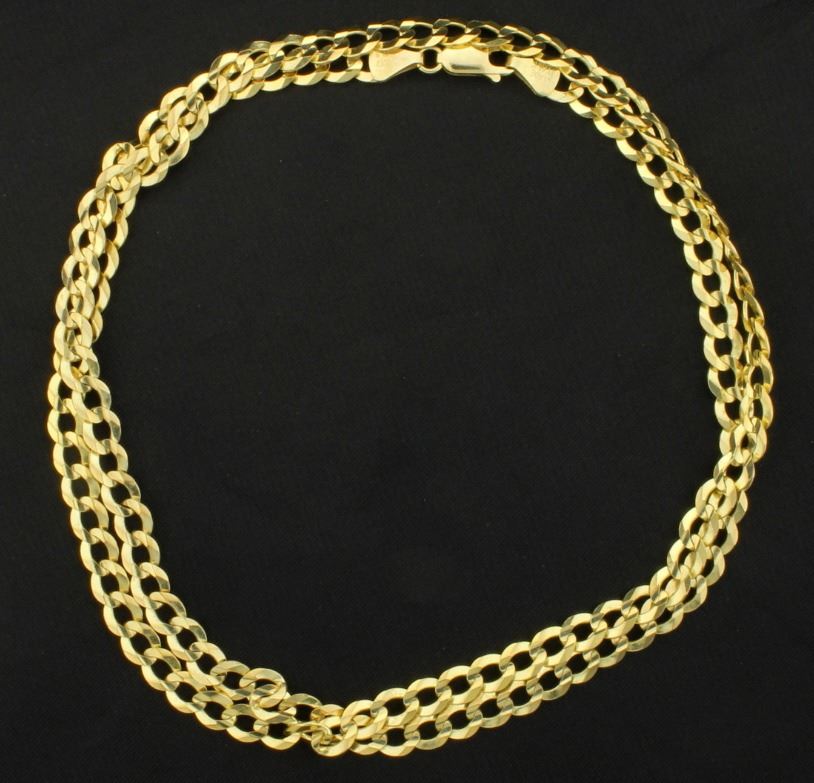 10K yellow gold, it is 5.5mm wide. 18.2g