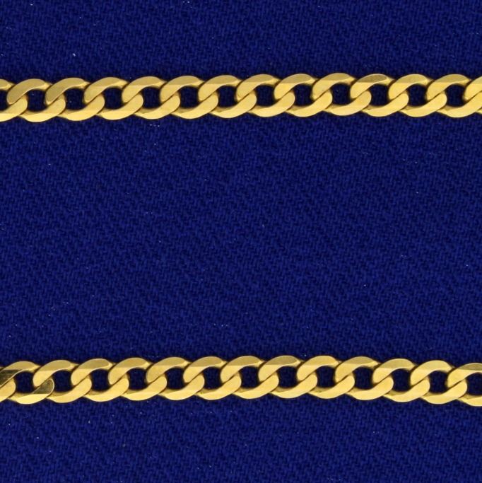 In 14k yellow gold, Italian Made. 3.2mm thick with a lobster clasp. 8.8g.