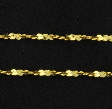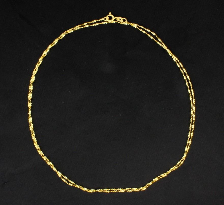 It is 14K yellow gold and 1.1mm thick. 2.4g