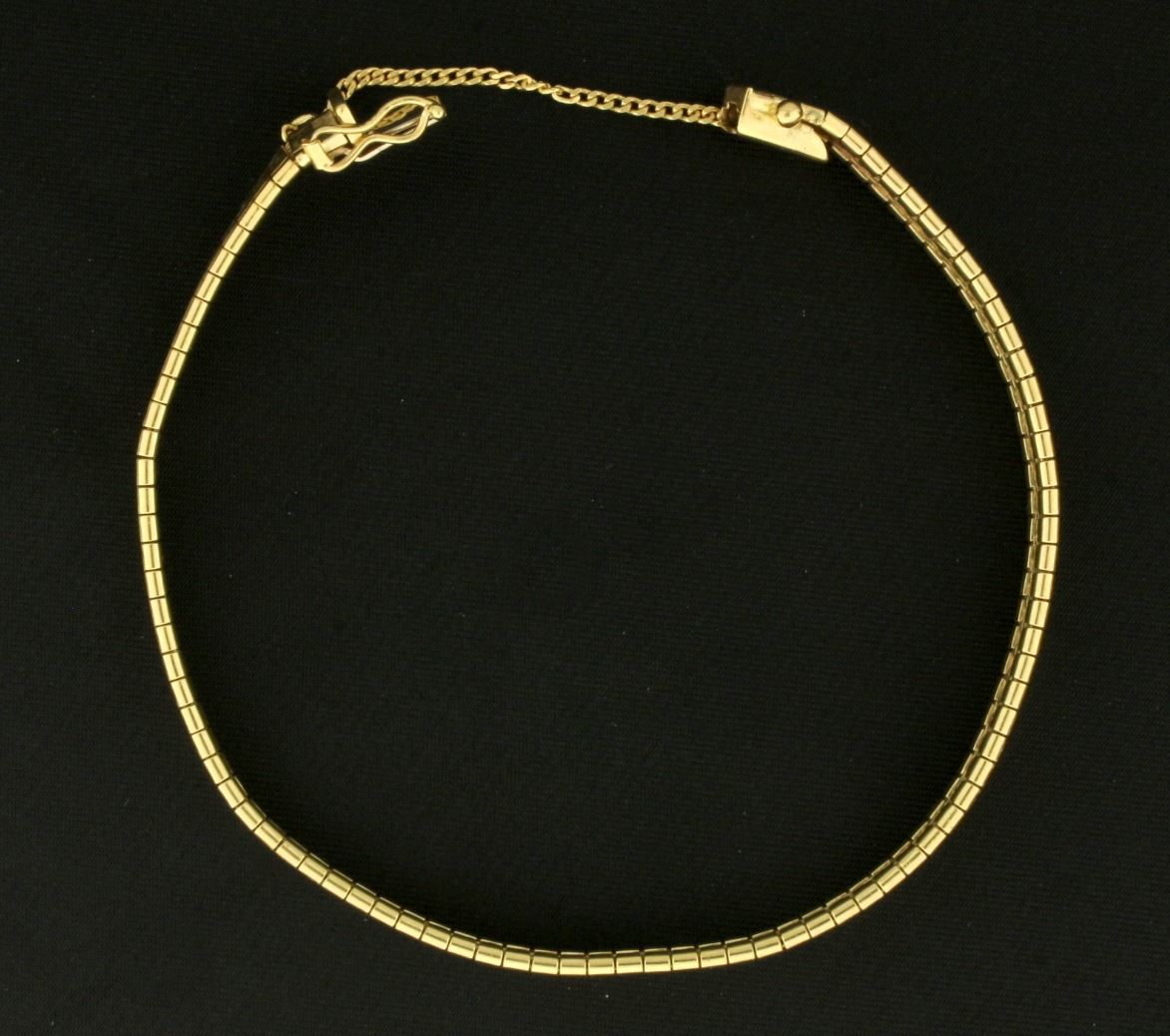 In 14k yellow gold. 5mm wide, with safety clasp and chain. 13.3g.