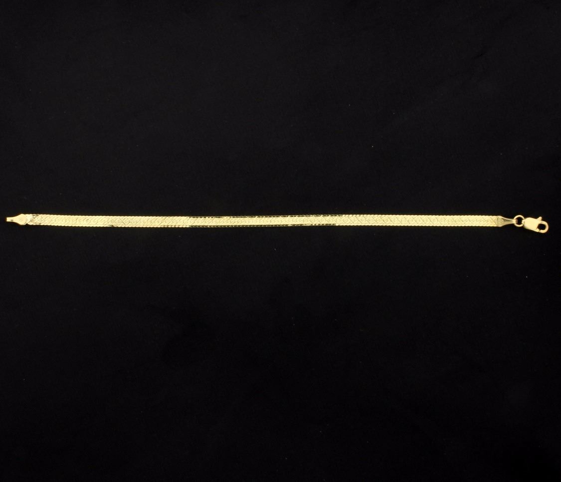 In 14K yellow gold, this bracelet is beautifully detailed and is 3.5mm wide and 7 inches long. 3.2g