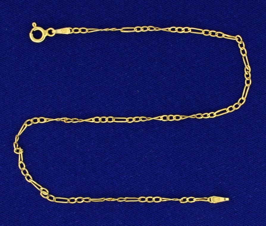 In 14k yellow gold. 2mm wide and 9 1/2" long. 0.9g.