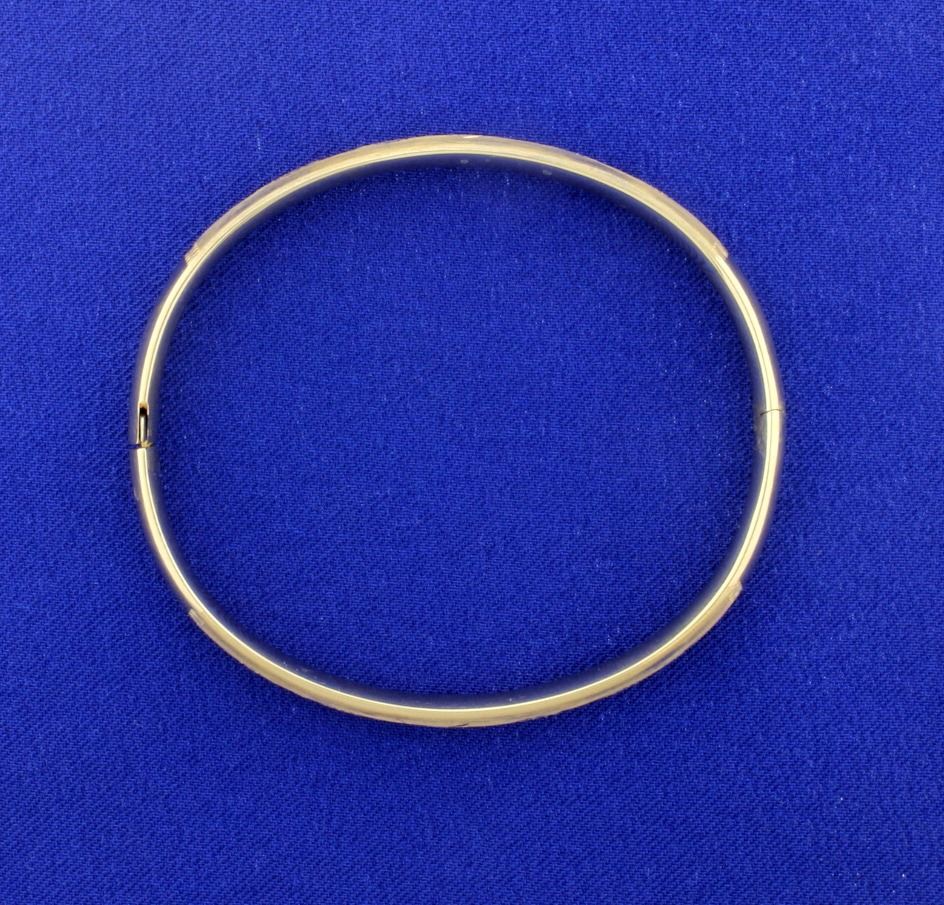 In 14K yellow gold, the bangle is 2 1/2 inch in diameter and has a very unique pattern. 11.2g
