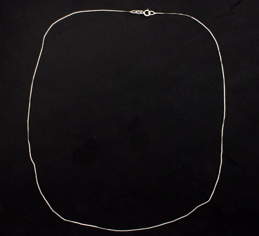This 14K white gold chain is 18 inches long and .5mm thick. 0.8g
