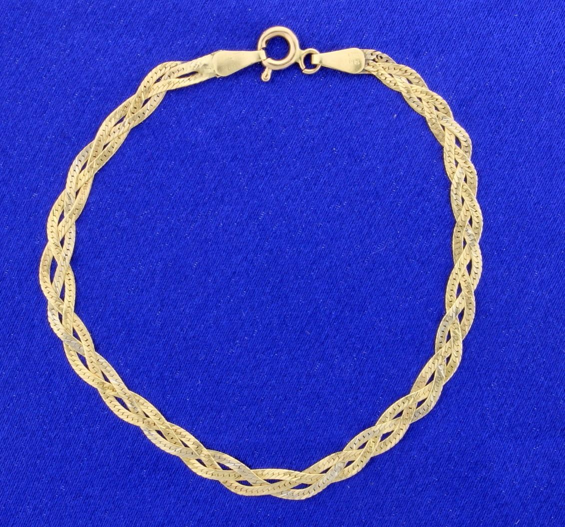In 14k yellow gold this bracelet is just over 7inches long and is 3.2mm wide. 2.5g