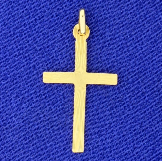 In 14K yellow gold, the pendant is 1 1/4 inches long with bale. 1.0g
