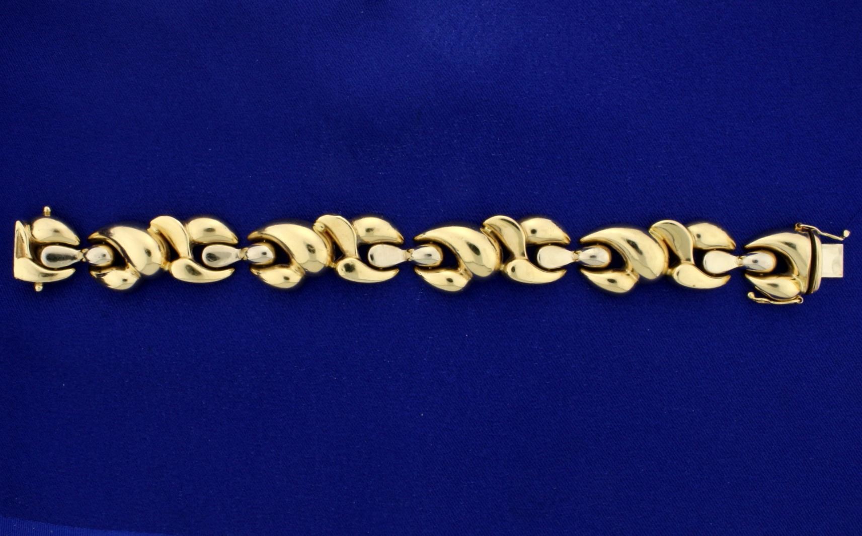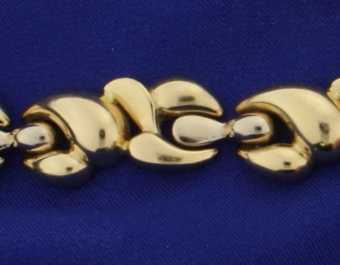 In 14k yellow gold, 7 3/8 inches long with a double safety clasp. 34.0g