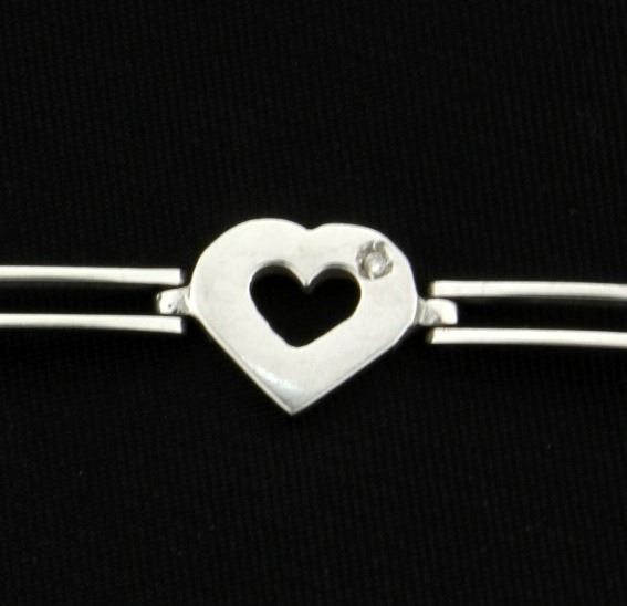 In 14K white gold this bracelet is 7 inches long and contains three .01ct diamonds. There is a lobster clasp for safety. 9.9g