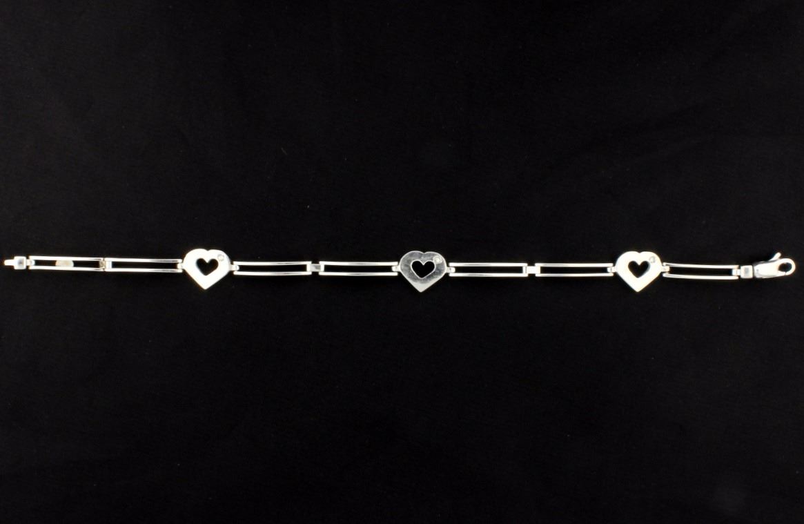 In 14K white gold this bracelet is 7 inches long and contains three .01ct diamonds. There is a lobster clasp for safety. 9.9g