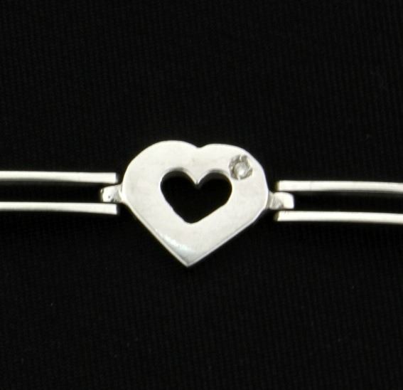 In 14K white gold this bracelet is 7 inches long and contains three .01ct diamonds. There is a lobster clasp for safety.         9.9g