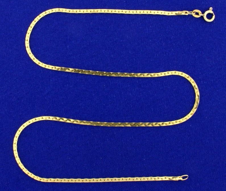 In 14k yellow gold, 2mm thick. 16.5 inches long, 6.6g.