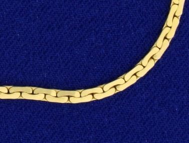 In 14k yellow gold, 2mm thick. 16.5 inches long, 6.6g.