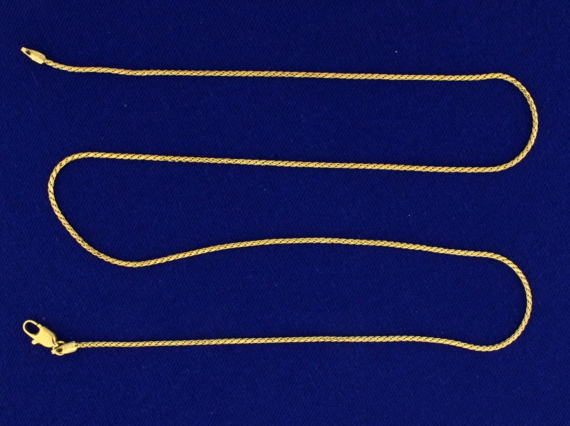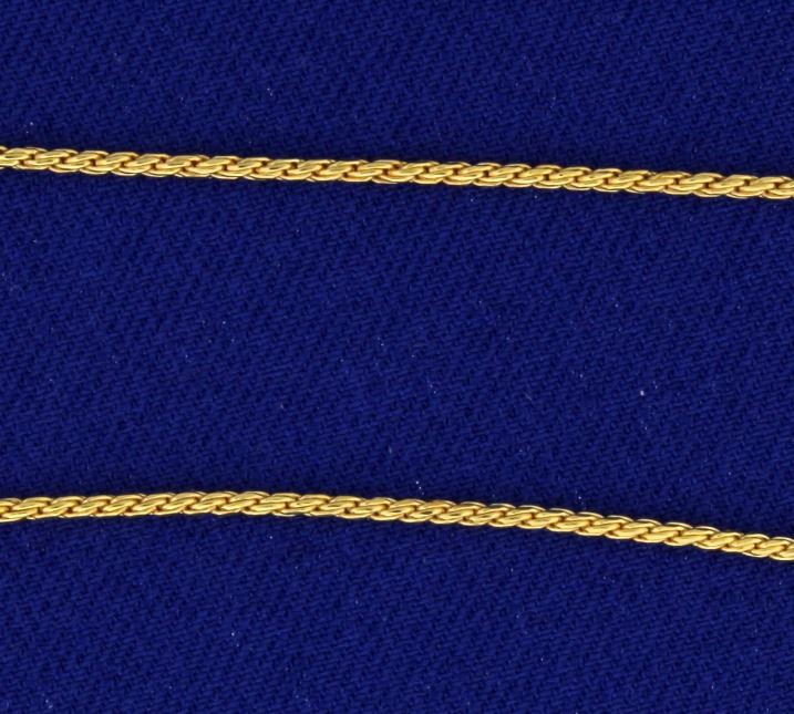 In 14k yellow gold. 18 inches long and 1.1mm thick. 3.8g.