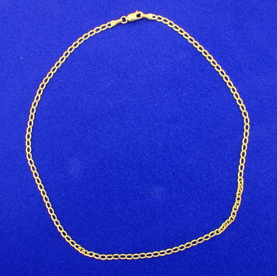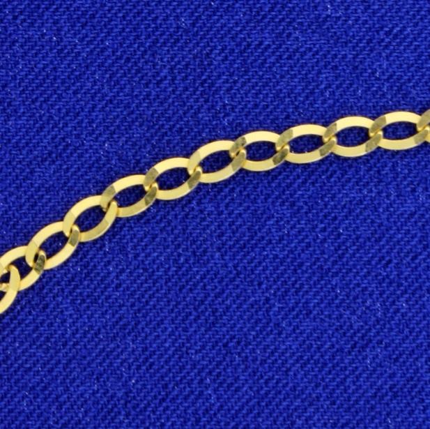 In 10k yellow gold this chain is 16 1/2inches long by 2.9mm wide.       3.6g
