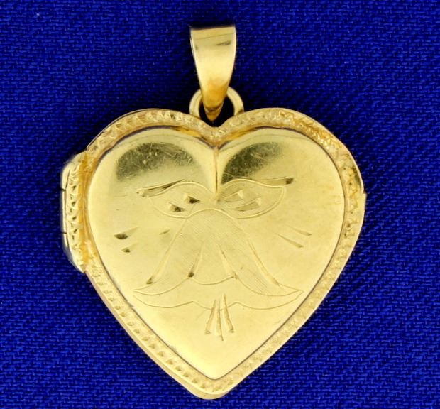 In 14K yellow gold, it can store pictures inside. it is 1 1/8 inch long with bale. 3.6g