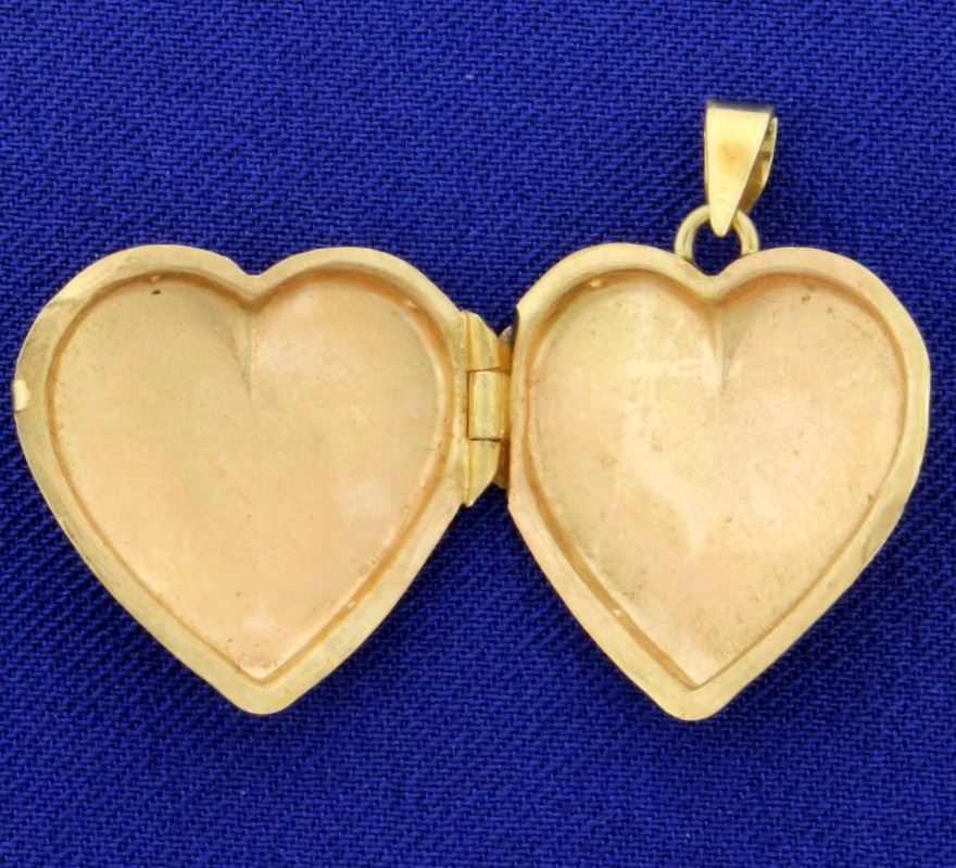 In 14K yellow gold, it can store pictures inside. it is 1 1/8 inch long with bale. 3.6g
