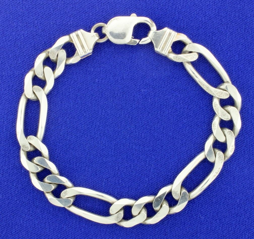 This bracelet is 8 inches long and 9.6mm thick, it has a lobster clasp. 24.2g