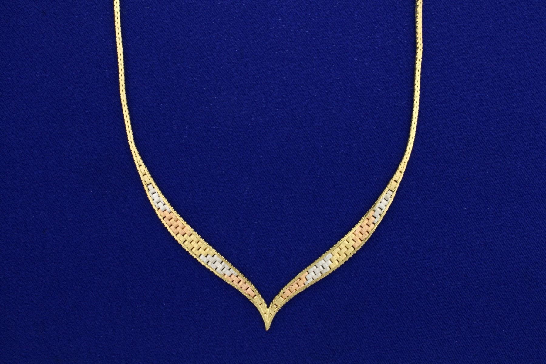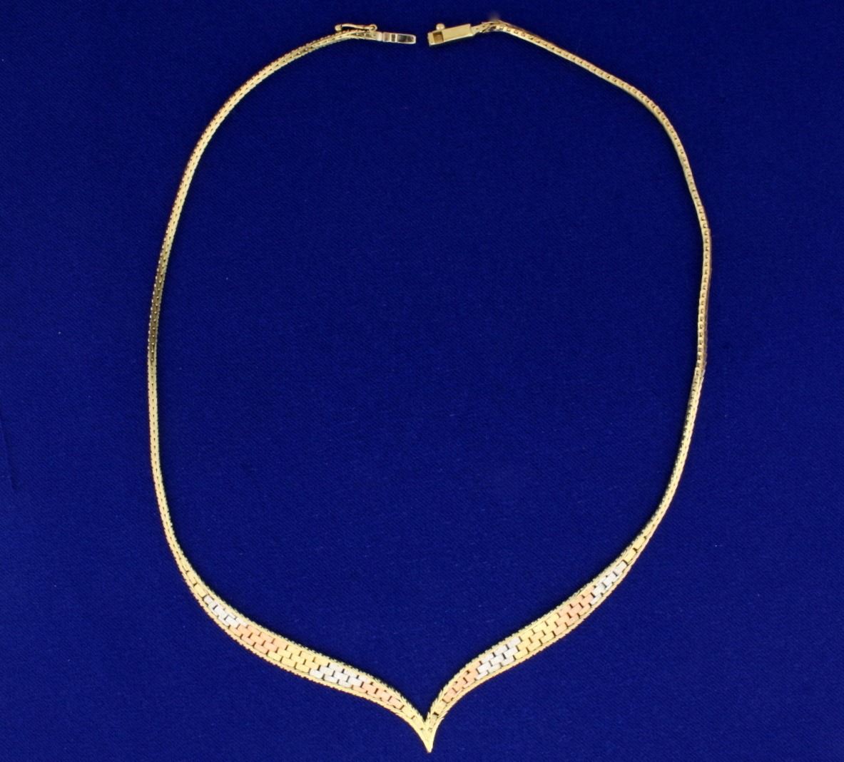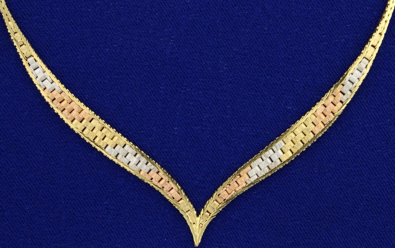 Italian Made Rose, Yellow, and White 14k Gold Necklace