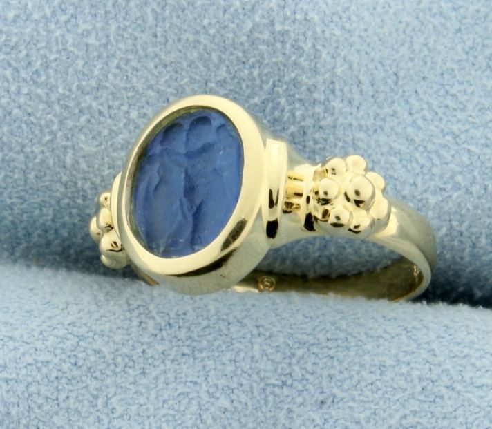 In 14K yellow gold it is a size 7 1/2. 4.6g