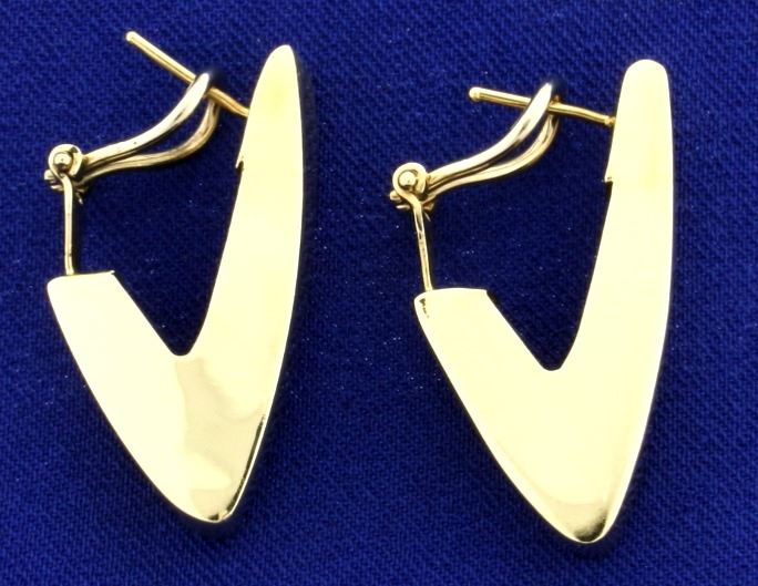 In 14k yellow gold. 1 1/4" long with safety clip over post. 6.9g.