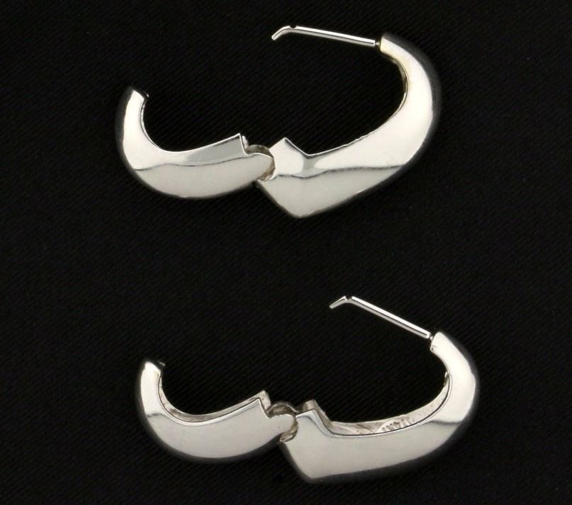 These fantastic and unique Heart shaped hoops earrings are 14k Italian white gold. Measurements are approximately 3/4" x 1/2". 6.8g