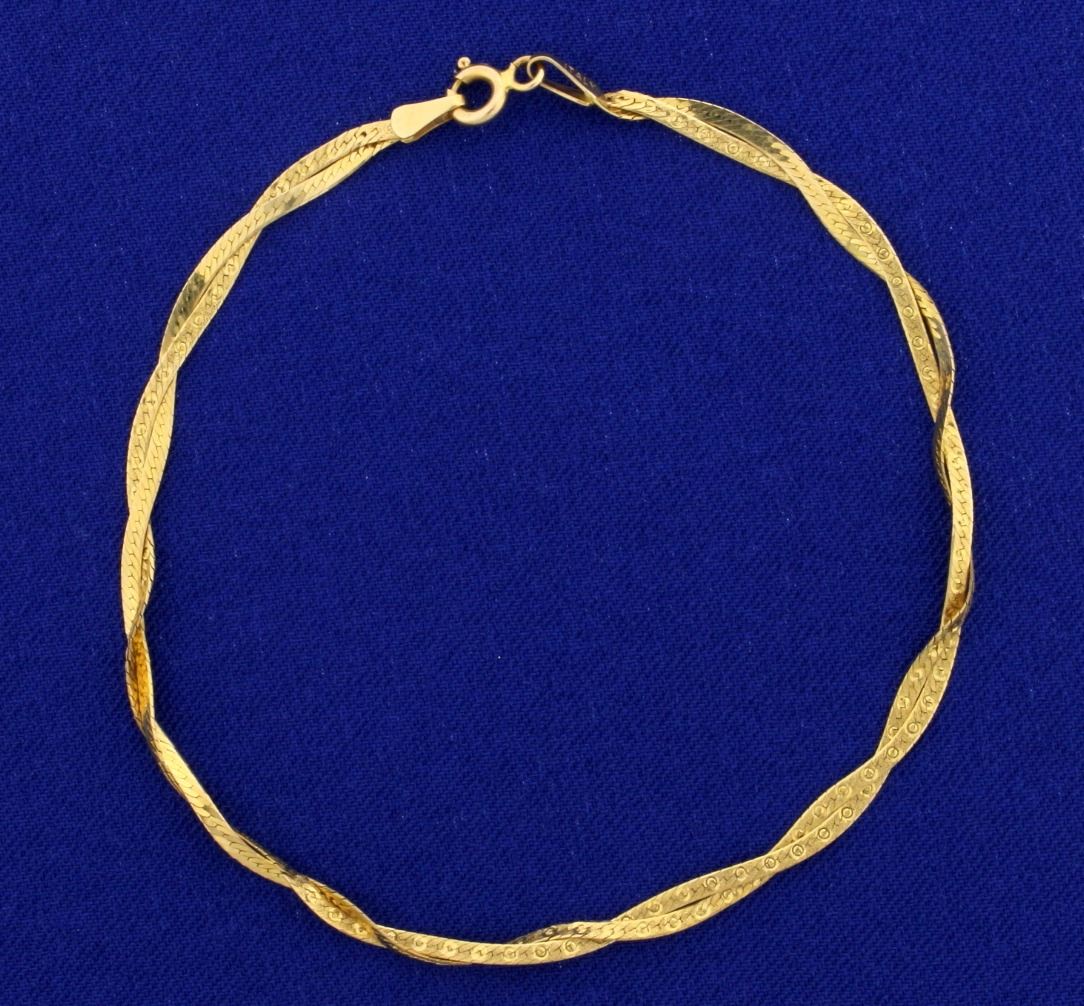 In 14k yellow gold. 8 inches long and 1.75mm thick. 1.8g.