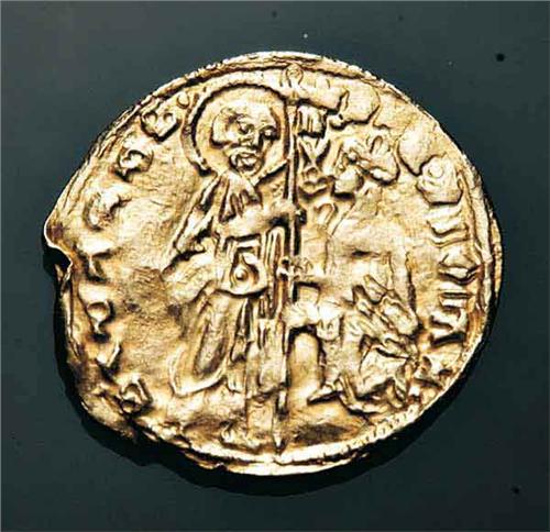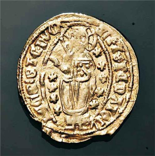 Italia - Monete medioevali - Insediamenti genovesi nel Mediterraneo orientale - Isola di Chio - La Maona (1347-1566) - Filippo Maria Visconti (1421-1436) - Ducato, imitazione del Ducato di Venezia - Metallo: Au - Zecca: - Diritto: il Doge in ginocchio riceve da San Marco il vessillo della Repubblica - Rovescio: Gesù Cristo benedicente entro una cornice a mandorla - gr. 3,54 -