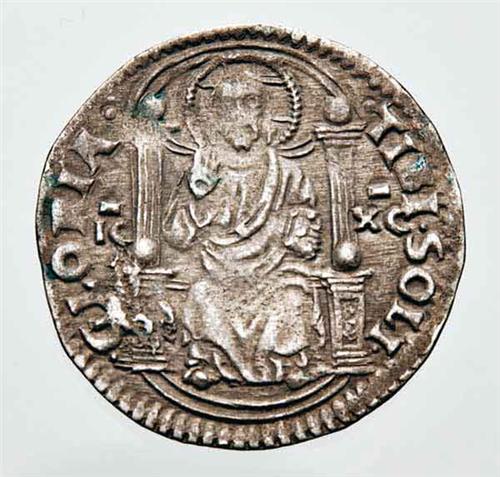 Italia - Monete medioevali - Repubblica di Venezia - Pietro Mocenigo (1474-1476) - Marcello o Mezza Lira databile al 1474 - Metallo: Ag - Zecca: Venezia - Diritto: il Doge genuflesso riceve da San Marco il vessillo della Repubblica - Rovescio: Gesù Cristo nimbato, seduto in trono di fronte nell'atto di benedire - gr. 3,16