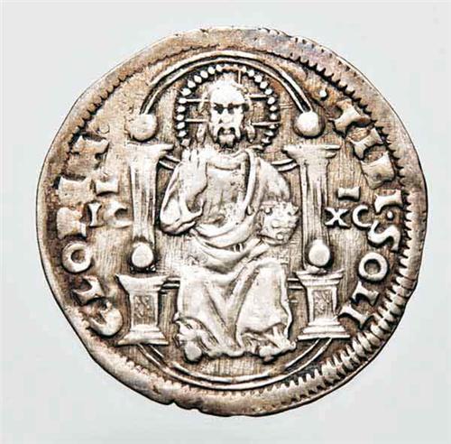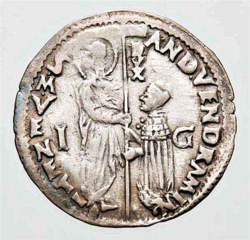 Italia - Monete medioevali - Repubblica di Venezia - Andrea Vendramin (1476-1478) - Marcello o Mezza Lira databile al 1477 - Metallo: Ag - Zecca: Venezia - Diritto: il Doge genuflesso riceve da San Marco il vessillo della Repubblica - Rovescio: Gesù Cristo nimbato, seduto in trono di fronte nell'atto di benedire - gr. 3,20