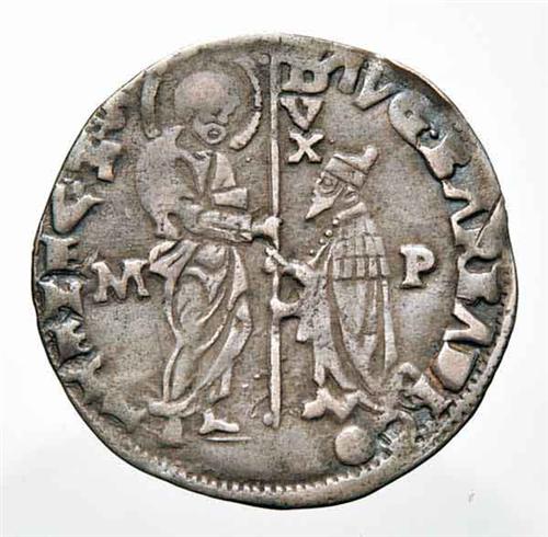 Italia - Monete medioevali - Repubblica di Venezia - Agostino Barbarigo (1486-1501) - Marcello o Mezza Lira databile al 1494 - Metallo: Ag - Zecca: Venezia - Diritto: il Doge genuflesso riceve da San Marco il vessillo della Repubblica - Rovescio: Gesù Cristo nimbato, seduto in trono di fronte nell'atto di benedire - gr. 3,12 - Sigla del massaro (MP) molto rara - Patina di medagliere