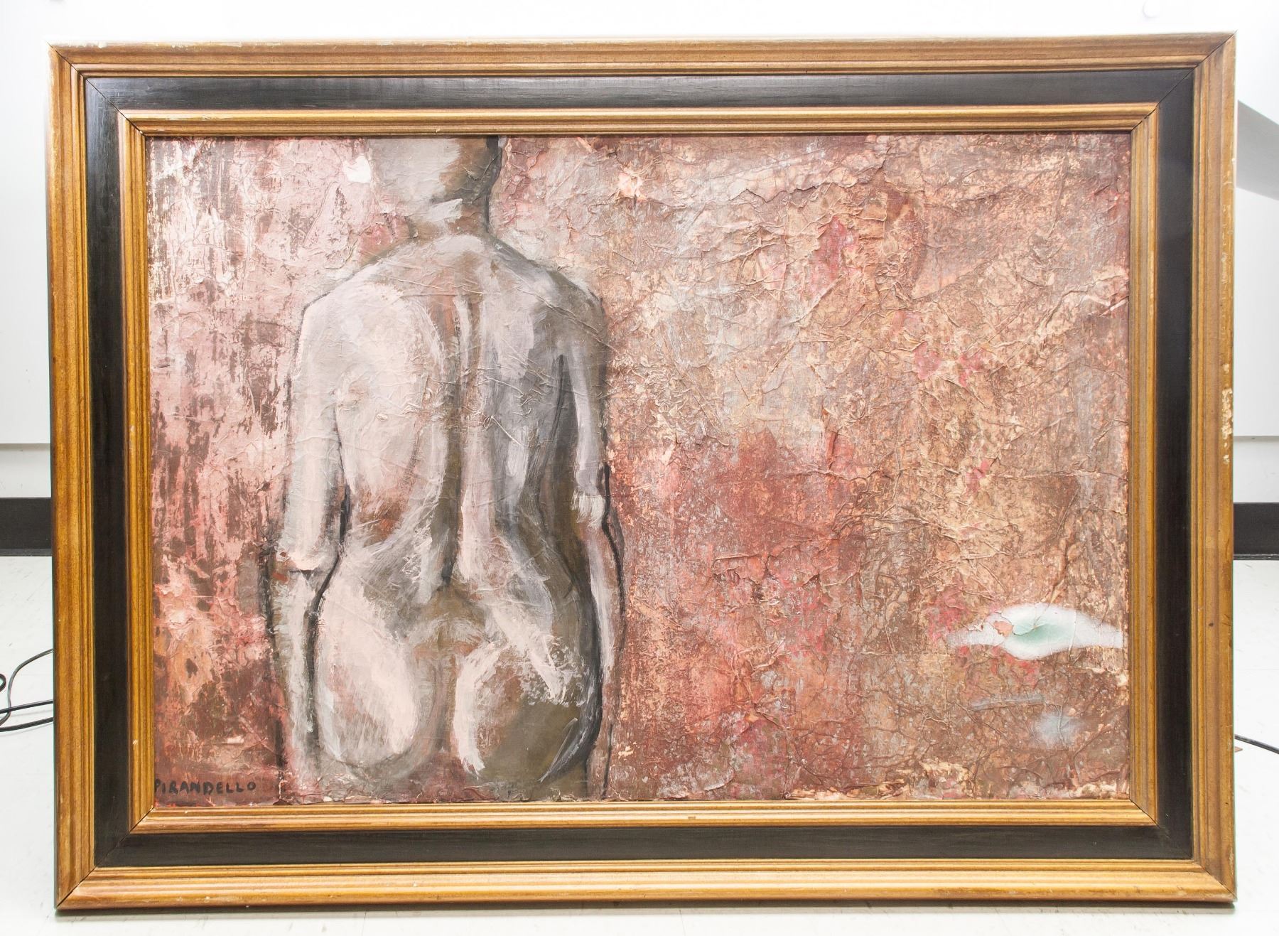 Oil on canvas framed. Featuring the back of a nude woman. Signed PIRANDELLO on the lower left corner. 25.6 x 38.2 inches (65 x 97 cm). PROVENANCE: Southern Ontario Estate