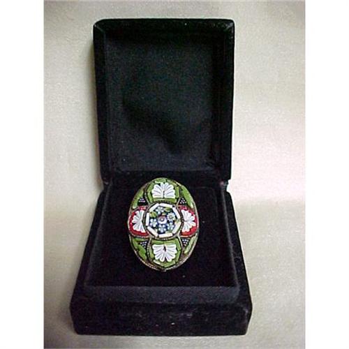 This is a very beautiful oval brooch which we think may be from the late 1800's to the early 1900's from the type of pin on it. It is in excellent condition except it is missing the pin catch and it is marked "Made in Italy".