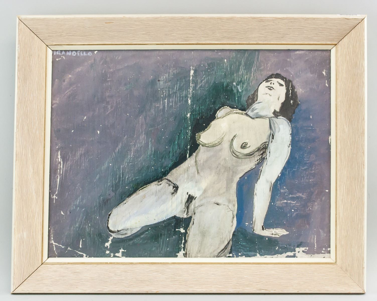 Oil on canvas, framed. Featuring a nude woman. Signed illegibly on the upper left corner. Canvas: 42 x 56 cm (16.5 x 22 inches). Frame: 54 x 69 cm (21 x 27 inches). Provenance: This lot carries limited provenance from a Southern Ontario estate