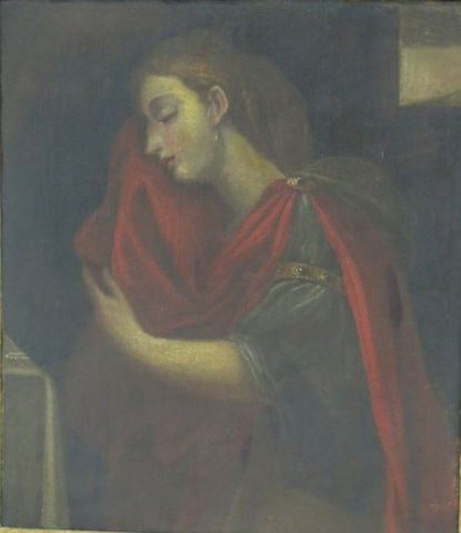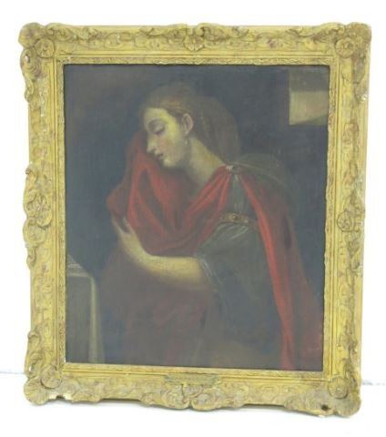Oil on canvas. Framed. Unsigned. Approx. 23" x 20" unframed, 28" x 25" framed. Restored, relined.