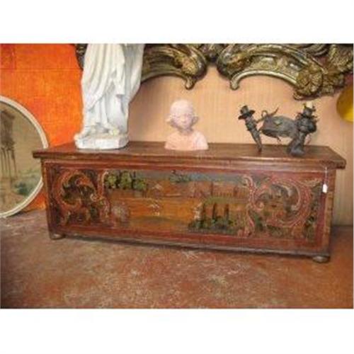 Fantastic painted nuptials trunk from Marche, ca 18 th century.
