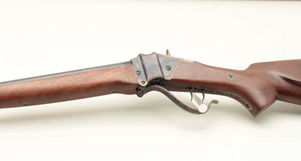 rifle, .45-70 caliber, 34” half round/half octagon barrel, blued and case hardened finish, wood stocks, S/N SH17210, double set triggers (working at time of description), in overall near new condition. (Modern). Est.: $600-$1,200.