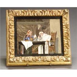 Italian Pietra Dura Plaque of a Monk and an Elderly Woman
