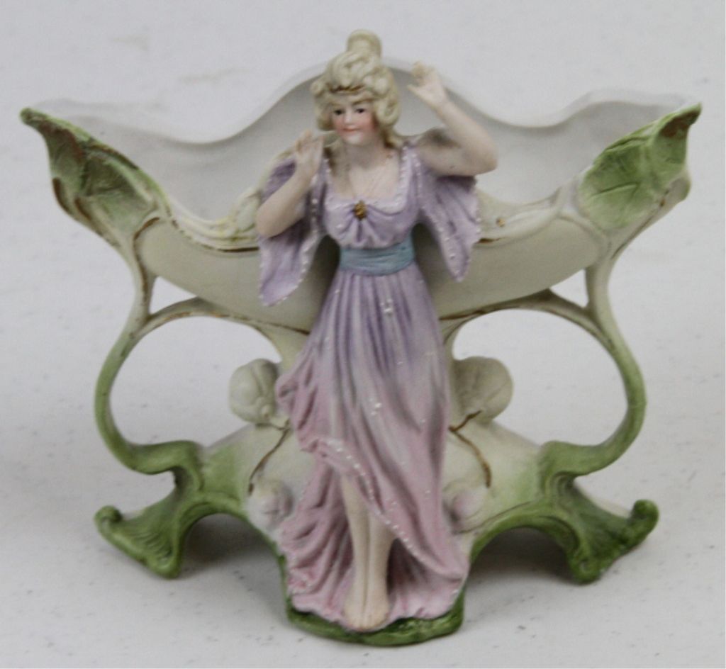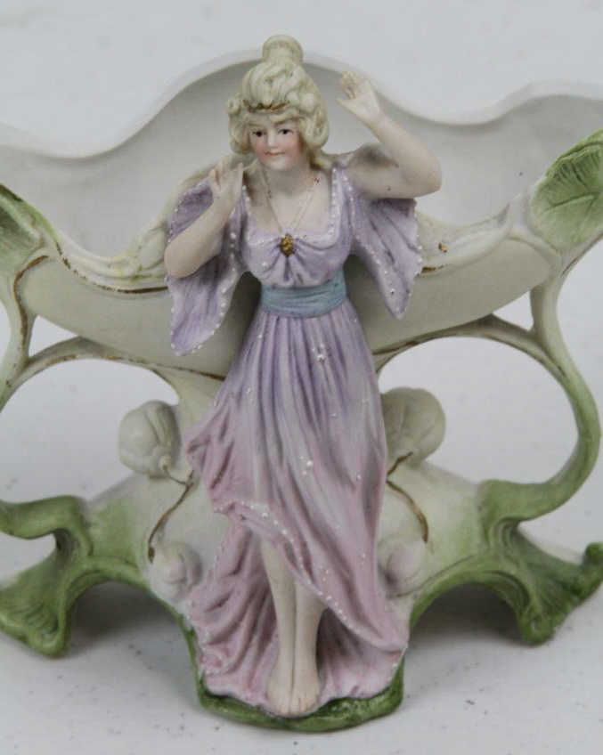 Italian Porcelain Vase - Has Victorian lady with amazing detail. All of her fingers are intact. Bottom reads, "5 Colp 7988" Incredibly detail and hand painted. Measures 5.5" tall.