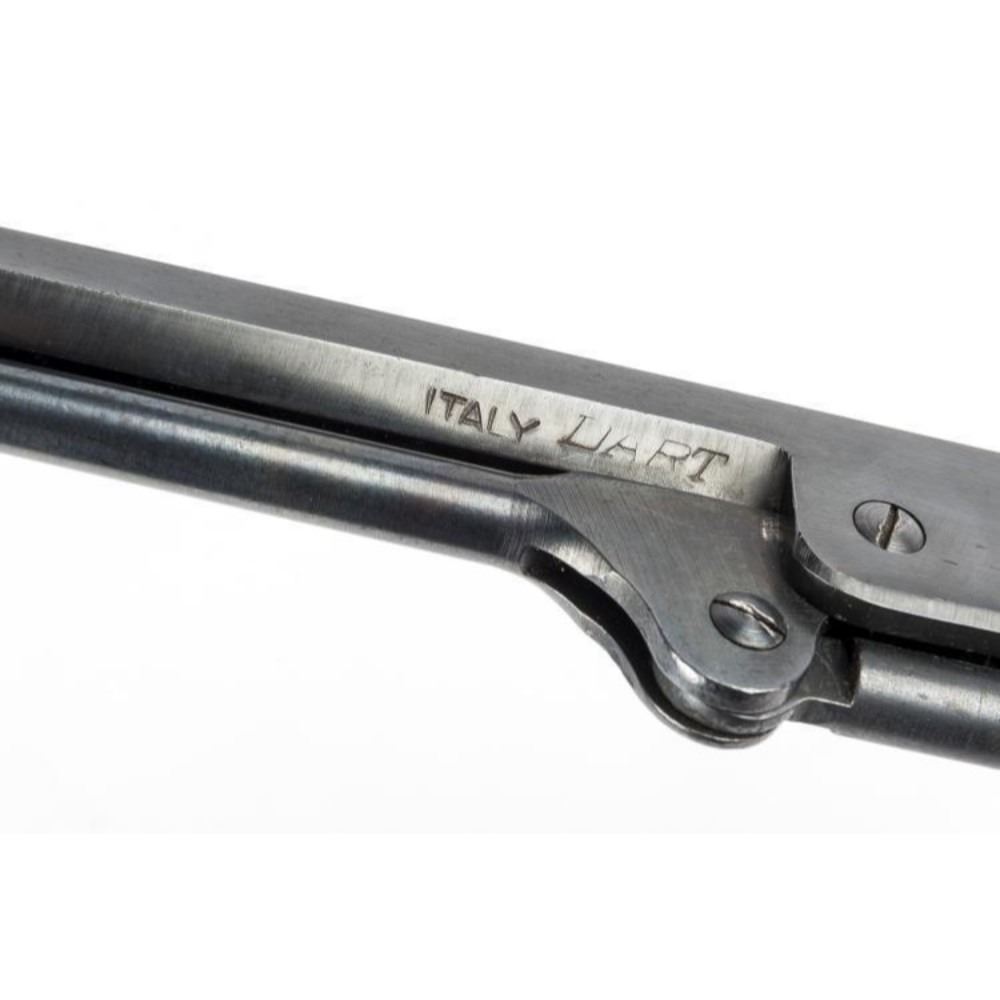 SERIAL NUMBER: C7818 DESIGN: Single barrel revolver. 7" octagonal barrel. .36 caliber. MATERIAL/FINISH COMPOSITION: Blued barrel. Brass receiver. Wood grips. FEATURES: Ships engraved to cylinder. CONDITION: Very good. Approximately 85% of finish remains.