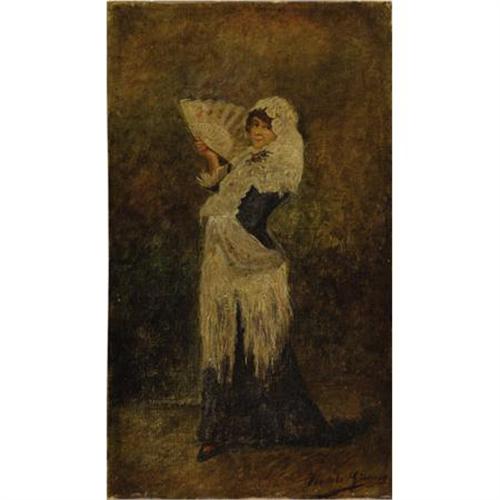 <B>ITALIAN SCHOOL </B></I>(Nineteenth Century)<BR><I>Portrait of a Woman with Fan</B></I><BR>Oil on canvas<BR>14 x 8 inches (35.6 x 20.3 cm)<BR>Signed indistinctly at lower right<BR> <B>Condition Report:</B> Normal signs of wear as appropriate with age.<BR><BR><b>Shipping:</b> Requires 3rd Party Shipping (<a target="_blank" href="http://www.heritageauctions.com/common/shipping.php">view shipping information</a>)