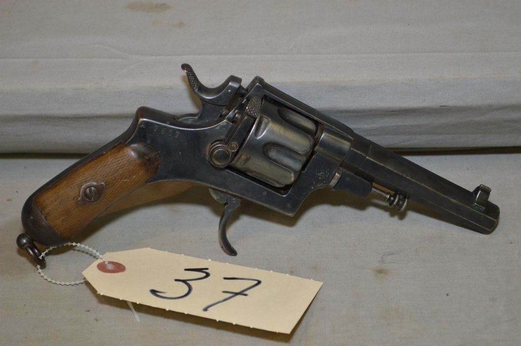Italian Service ( FAB ARMI BRESCIA ) Dated 1890 Model 1889 Bordeo 10.4 MM Italian Cal 6 Shot Revolver w/ 116 mm bbl [ fading blue finish, folding trigger, worn checkered wooden grips w/lanyard ring ] Ser # A7517 ANTIQUE NO PAL REQ